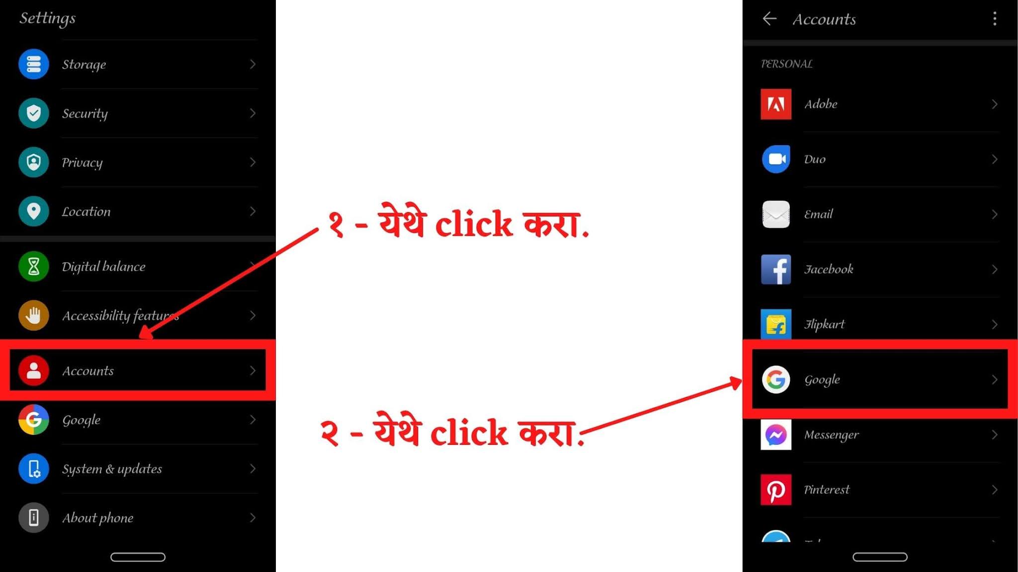 स्टेप १: सर्वात अगोदर तुमच्या फोनच्या सेटिंगमध्ये जा. त्तेथे खालच्या बाजूस तुम्हाला Account नाव असलेले ऑपशन दिसेल.