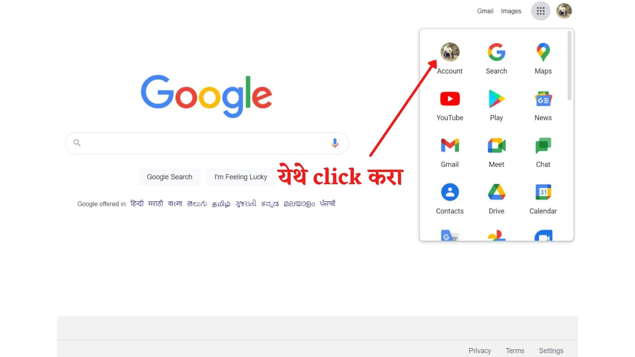 स्टेप १: सर्वात अगोदर तुमच्या Browser मध्ये जा. तेथे तुम्हाला उजव्या बाजूस वरच्या साईडला Account नावाचे ऑपशन दिसेल. त्यावर क्लिक करा.