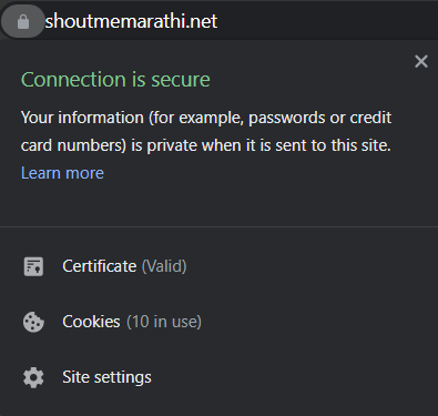 जर वेबसाईटच्या URL मध्ये अगोदर https असेल तर ह्याचा अर्थ ती वेबसाईट किंवा ब्लॉग Secure आहे असा होतो.